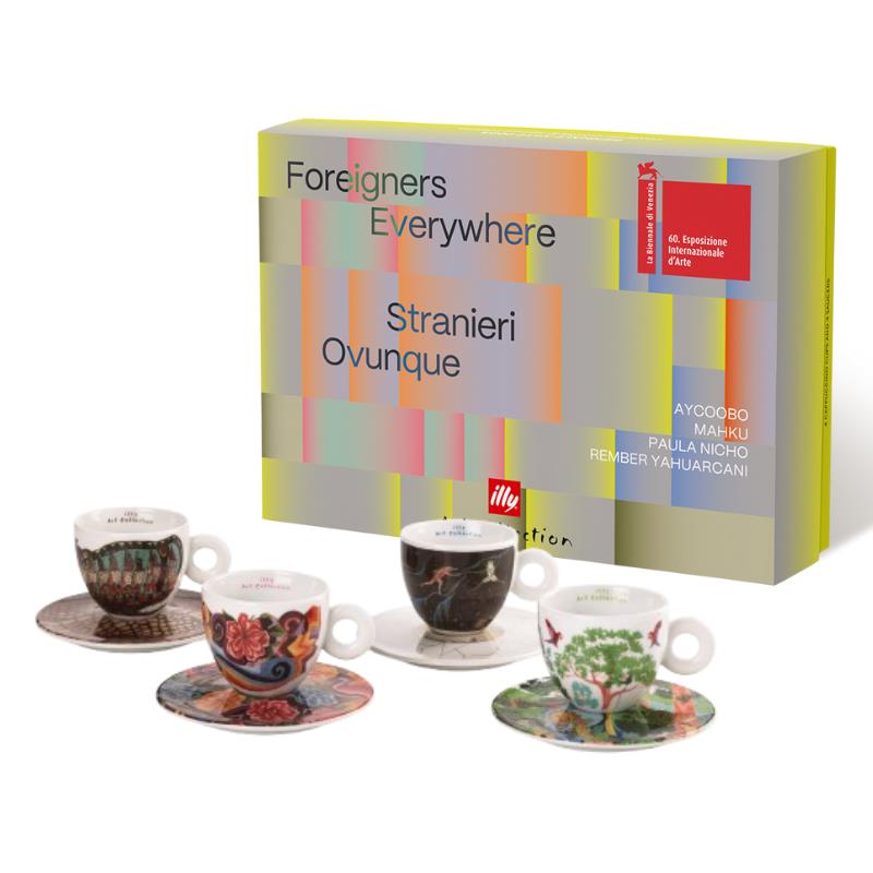 illy Art Collection Biennale 2024 Cappuccino Fincan ve Tabağı ile Latin Amerika'nın çeşitli kültürlerine ve derin hikayelerine kendinizi kaptırın. Bu özel dörtlü cappuccino fincan ve tabak seti, her biri kendi topraklarının yerel geleneklerine ve çağdaş gerçeklerine dayanan benzersiz bir bakış açısına sahip dört yetenekli sanatçının eserlerini bir araya getiriyor.