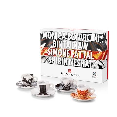 illy Art Collection Genesi Espresso Fincan ve Tabağı Seti, sıradan bir kahve setinden çok daha fazlası. Bu eşsiz koleksiyon, uluslararası alanda tanınmış dört sanatçı tarafından tasarlandı: Shirin Neshat, Monica Bonvicini, Simone Fattal ve Binta Diaw.