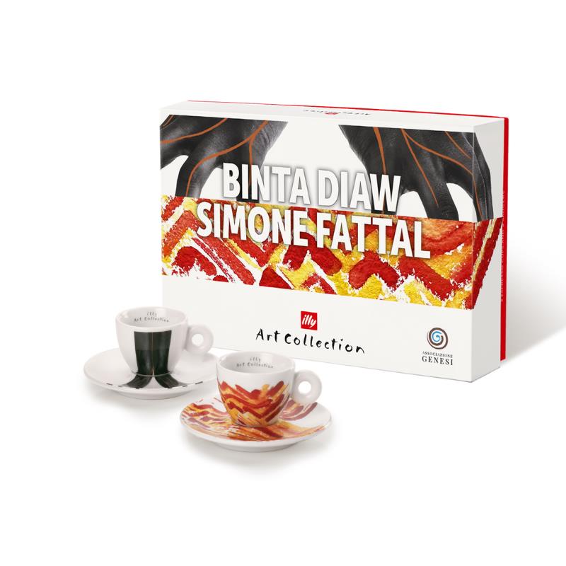 illy Art Collection Genesi Espresso Fincan ve Tabağı Seti, Simone Fattal ve Binta Diaw tarafından tasarlanmış iki espresso fincanı içermektedir.